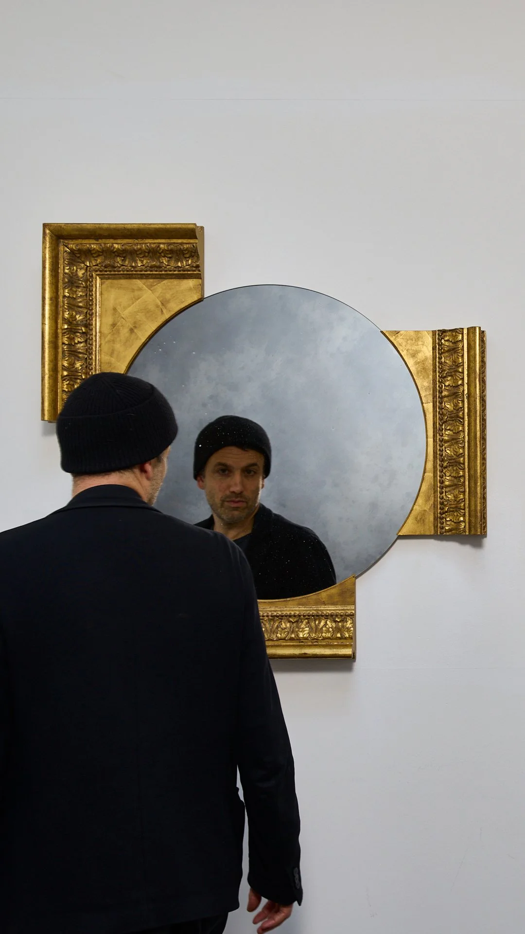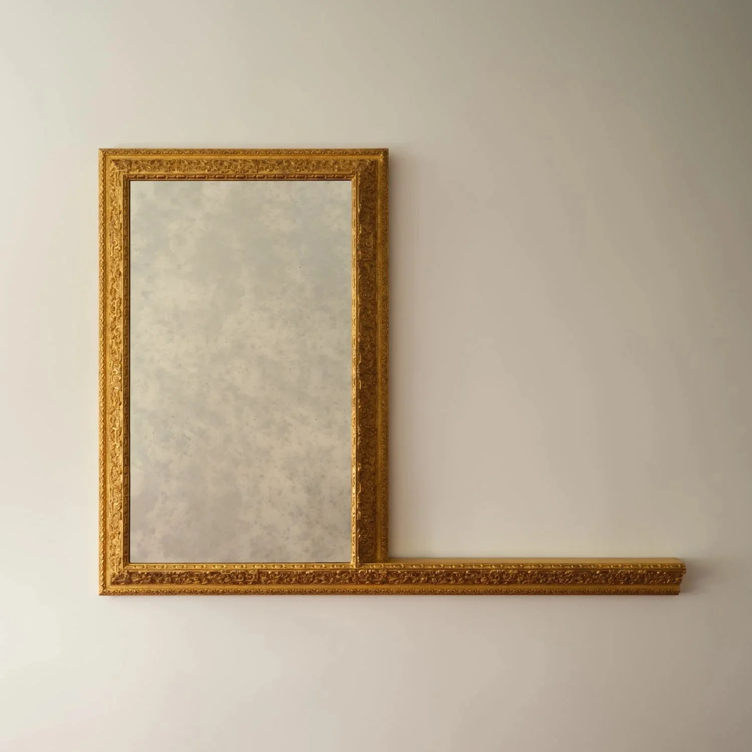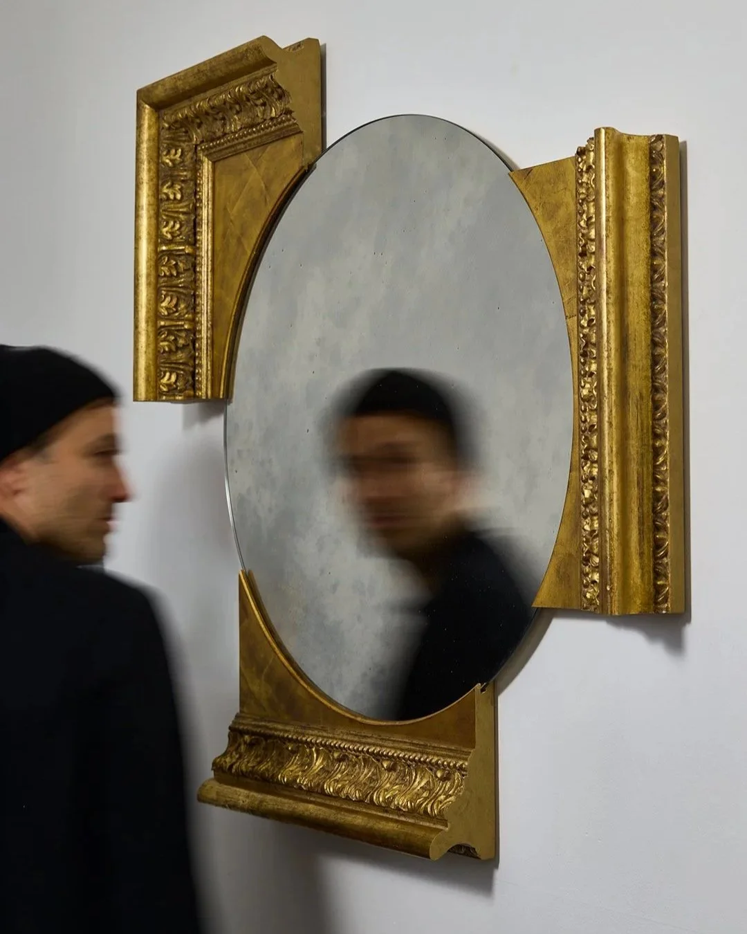 Car-Los focuses on deconstruction as a form of intimacy. A traditional gold-leaf frame is carefully divided, creating two independent mirrors that remain visually and conceptually linked. The exposed cut reveals the hidden interior—the thickness and quiet spaces that typically never meet the eye. Though separated, the two parts hold the memory of a shared origin; if reunited, their edges would nest perfectly together, returning to the whole from which they were born.